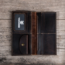 YUANGU原古复古疯马皮长款简约男士牛皮钱包手工休闲真皮刻字钱夹