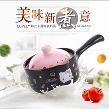 卡通韩式陶瓷奶锅单柄汤锅米糊热牛奶煮泡面婴儿辅食明火砂锅1.8L