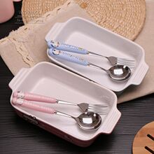 蓝粉圆勺陶瓷柄不锈钢勺主餐叉子西瓜甜品勺通用标准西餐勺子烘焙