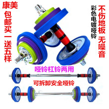 包胶彩色硅胶电镀哑铃男女士健身器材炼臂肌15 20公斤可拆卸哑铃