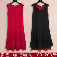 2017夏新款胖mm雪纺大码宽松中长款特大无袖吊带背心裙打底连衣裙