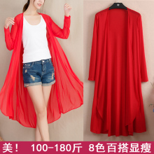 披肩外套2017春装新款女装大码开衫雪纺衫长袖外搭上衣夏季中长款