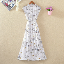 新款夏装雪纺连衣裙条纹印花长裙波西米亚海边沙滩裙立领背心裙潮