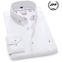 jpp秋季新款牛津纺男士长袖衬衫韩版修身男装纯色休闲白衬衣免烫