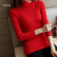 法莎曼 2017春秋新款中领女毛衣显瘦外套半高领套头长袖针织打底