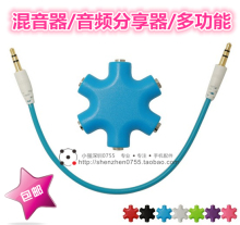 多接口音频分线器一分6音源分享拓展插头座耳机音响多功能同声器
