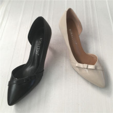 白色高跟鞋细跟女鞋夏蝴蝶结尖头单鞋女裸色婚鞋黑色工作皮鞋子女
