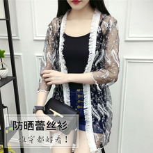 睫毛羽毛蕾丝衫夏防晒衣女薄七分袖中长款开衫外穿上衣大码雪纺衫