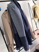 不计成本 粗纺精做 藏蓝拼色格子 纯羊绒小拉绒 时尚围巾披肩