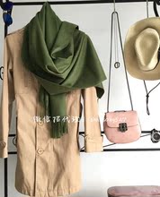 特价款 复古军绿色 高品质纯羊绒水波纹大围巾厚披肩