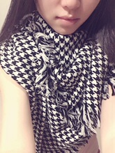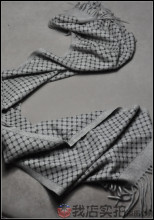 欧美明星演绎 重磅复古四面穗精梳羊绒羊毛 黑白千鸟格披肩/围巾