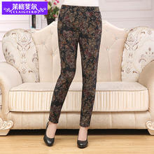 中老年人女装裤子妈妈印花裤直筒裤松紧腰打底裤春秋弹力修身长裤