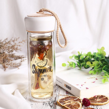 韩国可爱双层玻璃杯创意便携个性韩版清新学生男女情侣一对水杯子