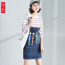 尚之恋牛仔背带裙女2017春装新款宽松显瘦半身裙韩版吊带裙牛仔裙