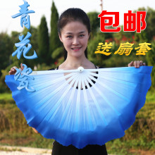 扇子 舞蹈 扇跳舞扇加厚骨仿真丝渐变色加长广场舞健身秧歌扇包邮