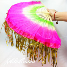 包邮舞蹈扇跳舞扇秧歌扇子广场舞扇子三色渐变扇子加长双面绸扇子