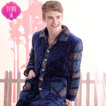 芬腾睡衣2016新款中年男士睡衣冬季加厚夹棉珊瑚绒长袖家居服套装