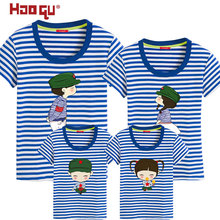 亲子装夏装母子母女一家四口全家庭装条纹短袖t恤卡通纯棉海魂衫