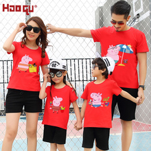 亲子装夏装麋鹿圆领短袖t恤休闲纯棉一家三款家庭装母女母子装潮