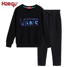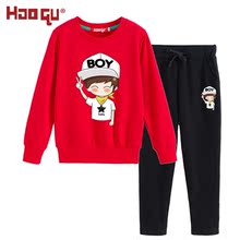 2016秋装中大童小男孩圆领卫衣套装儿童男童女童卡通休闲两件套潮