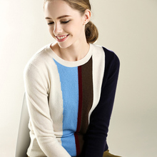 圆领羊绒衫 女 纯羊绒 春装新款套头彩条毛衣 修身显瘦针织打底衫
