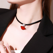 日韩红唇皮绳项链短款锁骨链女 韩版时尚脖子饰品颈带颈圈项圈潮