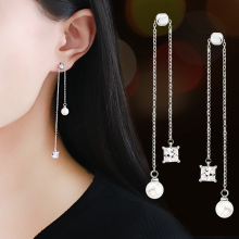 s925银针不对称流苏耳环女韩国时尚气质耳坠长款耳钉耳饰甜美韩版