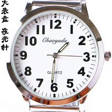 正品包邮 中老年人手表防水老人表男表女表大数字弹簧钢带石英表