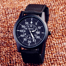 军表男士手表学生日历防水帆布皮带腕表石英表情侣男女士时尚手表
