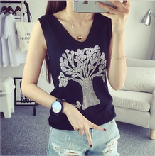 春夏新款大码字母闪亮印花V领冰丝针织背心烫钻亮丝吊带打底衫女