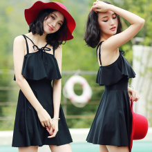 学生泳衣女裙式保守连体小胸聚拢显瘦遮肚保守韩国温泉游泳衣女