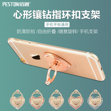 佰通 金属心形闪钻创意多功能指环扣懒人防摔折叠粘贴式手机支架