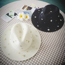 韩版淑女气质手工拼接小雏菊草帽子珍珠遮阳沙滩礼帽女时尚复古春