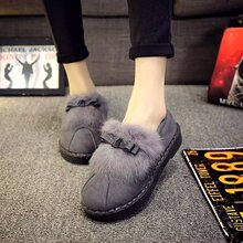 秋冬季女鞋棉鞋新款蝴蝶结毛毛鞋平底厚底加绒豆豆鞋保暖雪地鞋子