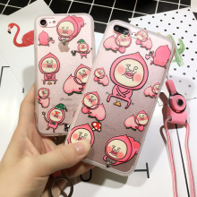 可爱屁桃君iphone6s手机壳硅胶卡通苹果7 plus透明保护套带挂绳女
