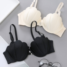 性感深V诱惑上薄下厚文胸套装 简约舒适纯色内衣裤聚拢小胸罩内裤