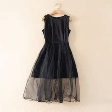 D27春夏季外贸尾单韩版优雅气质款高腰修身百搭网纱连衣裙长裙