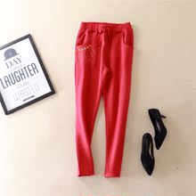 G5秋冬季外贸尾单韩版松紧腰刺绣加绒加厚舒适卫裤女装白菜价