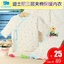 天使娃娃新生婴儿0-3-6月夹棉加厚保暖内衣套装宝宝秋衣裤冬服