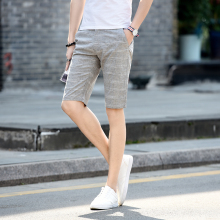 花花公子夏季休闲短裤男修身亚麻裤子青少年夏天潮流五分裤沙滩裤