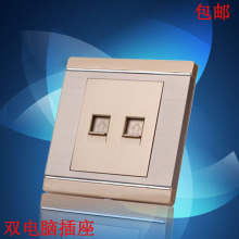86型开关插座面板 双网络插座 M8香槟金属拉丝网线 双电脑插座