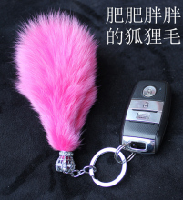 女士车钥匙扣可爱狐狸毛绒钥匙圈挂链玫红狐狸毛汽车钥匙挂件