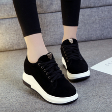 2017春秋新款韩版磨砂皮学生运动系带百搭厚底单鞋休闲鞋内增高女