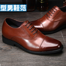 头层牛皮商务皮鞋内增高8cm三接头制式皮鞋高档三接头真皮皮鞋男