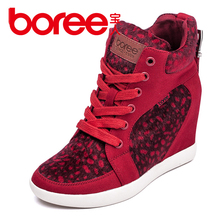 宝人高帮鞋女反绒皮面休闲鞋时尚隐形内增高运动鞋系带韩版单鞋