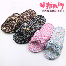 拖拖门 交叉带民族夏季家居家情侣男女条纹静音无声地板布底拖鞋