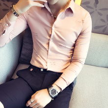 2017新款春季婚礼衬衣男长袖结婚粉色衬衫潮牌韩版修身新郎打底衫