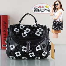 韩国进口时尚真皮女包 花朵羊皮包拼接包百搭斜挎包手提包潮 特价