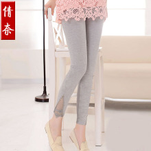 韩版潮女装春夏新款蕾丝拼接九分裤弹力显瘦打底裤有大码薄棉外穿