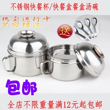 包邮不锈钢圆形便当盒 学生饭盒 家用餐具快餐盒 带手柄食堂工厂